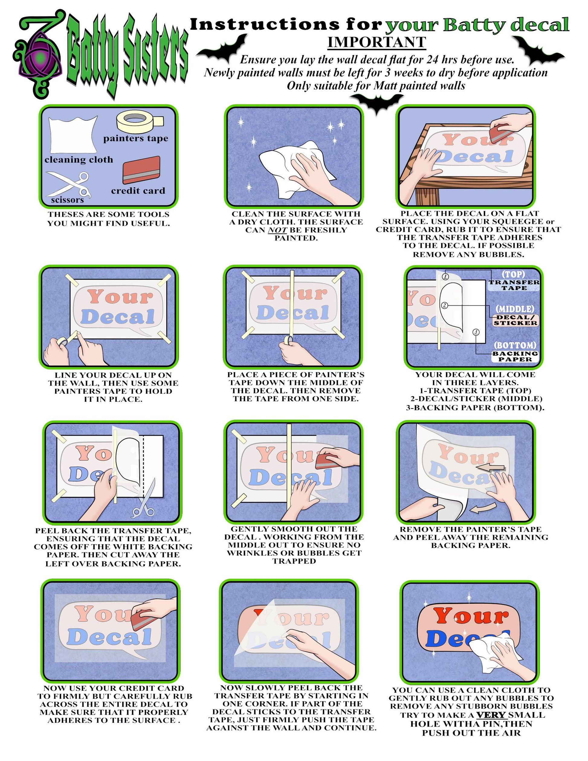 If there is anything you need. Please contact us through the shop or email us on info@3battysisters.com