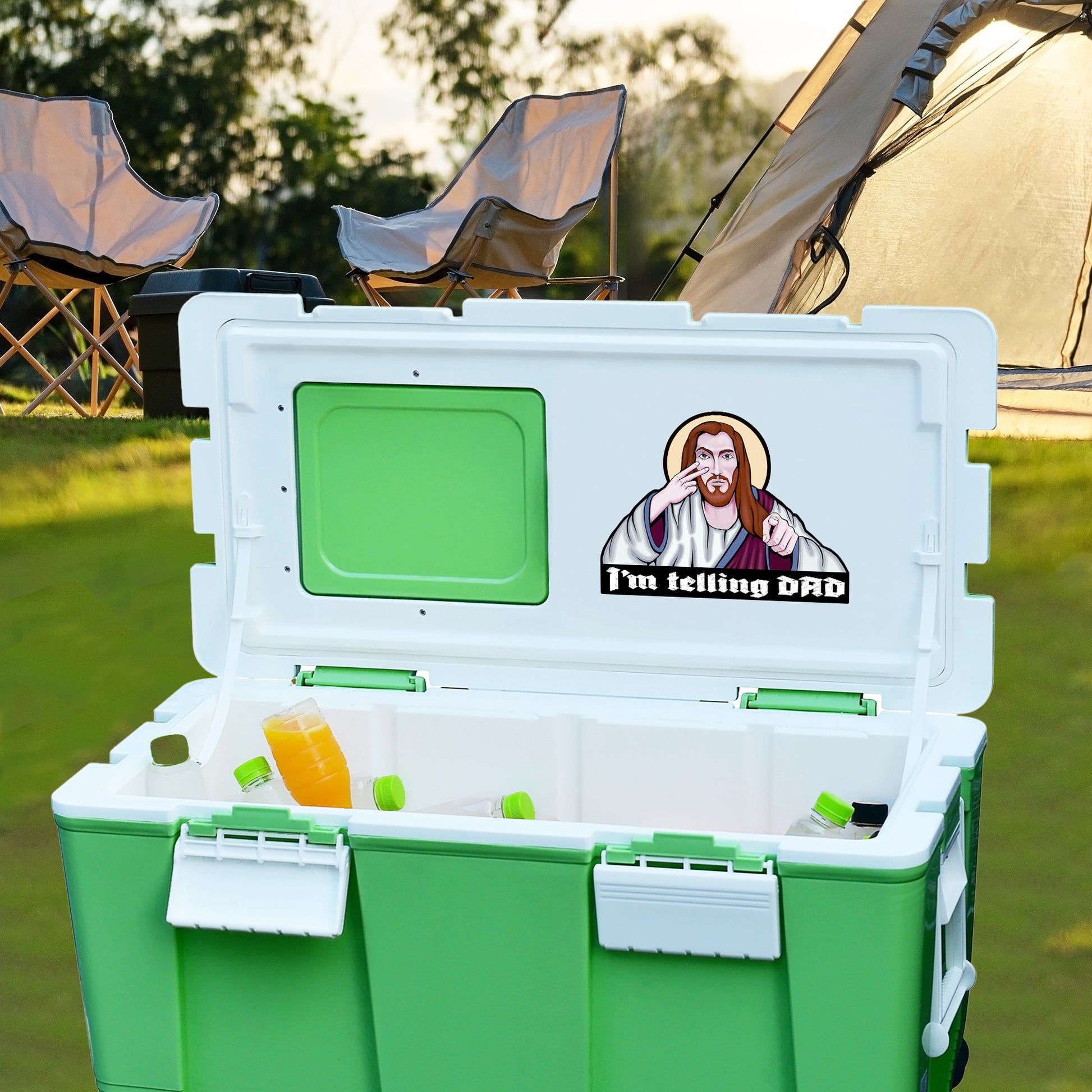 Funny “I’m Telling DAD” Jesus Sticker – Matte Laminated Vinyl Decal | 3-Pack Contour Cut Stickers | Christian Humor Gift | 5x3.75 Inch